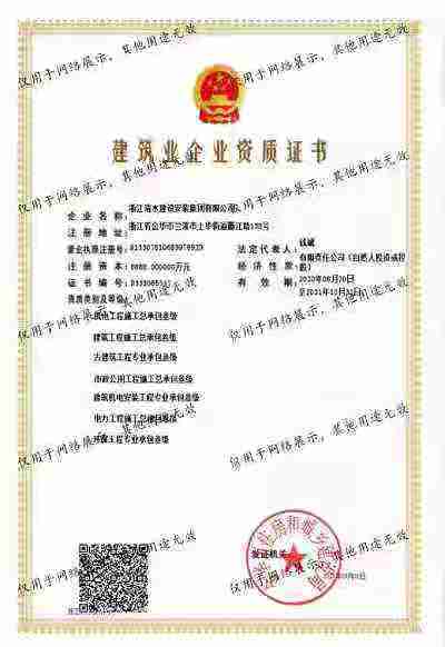 浙江清水建設安裝集團有限公司成立于2013年,注冊資金6688萬元。集團具有消防設施工程專業(yè)承包壹級、城市與道路照明專業(yè)承包壹級、電子與智能化專業(yè)承包壹級、建筑裝飾裝修專業(yè)承包貳級、防水防腐保溫專業(yè)承包貳級、市政工程施工總承包貳級、機電工程施工總承包貳級、建筑工程施工總承包貳級、電力工程施工總承包貳級、機電工程專業(yè)承包貳級、環(huán)保工程專業(yè)承包貳級、古建筑工程專業(yè)承包貳級、特種工程結構補強專業(yè)承包、建筑施工勞務作業(yè)專業(yè)承包(憑建筑業(yè)企業(yè)資質證書經營